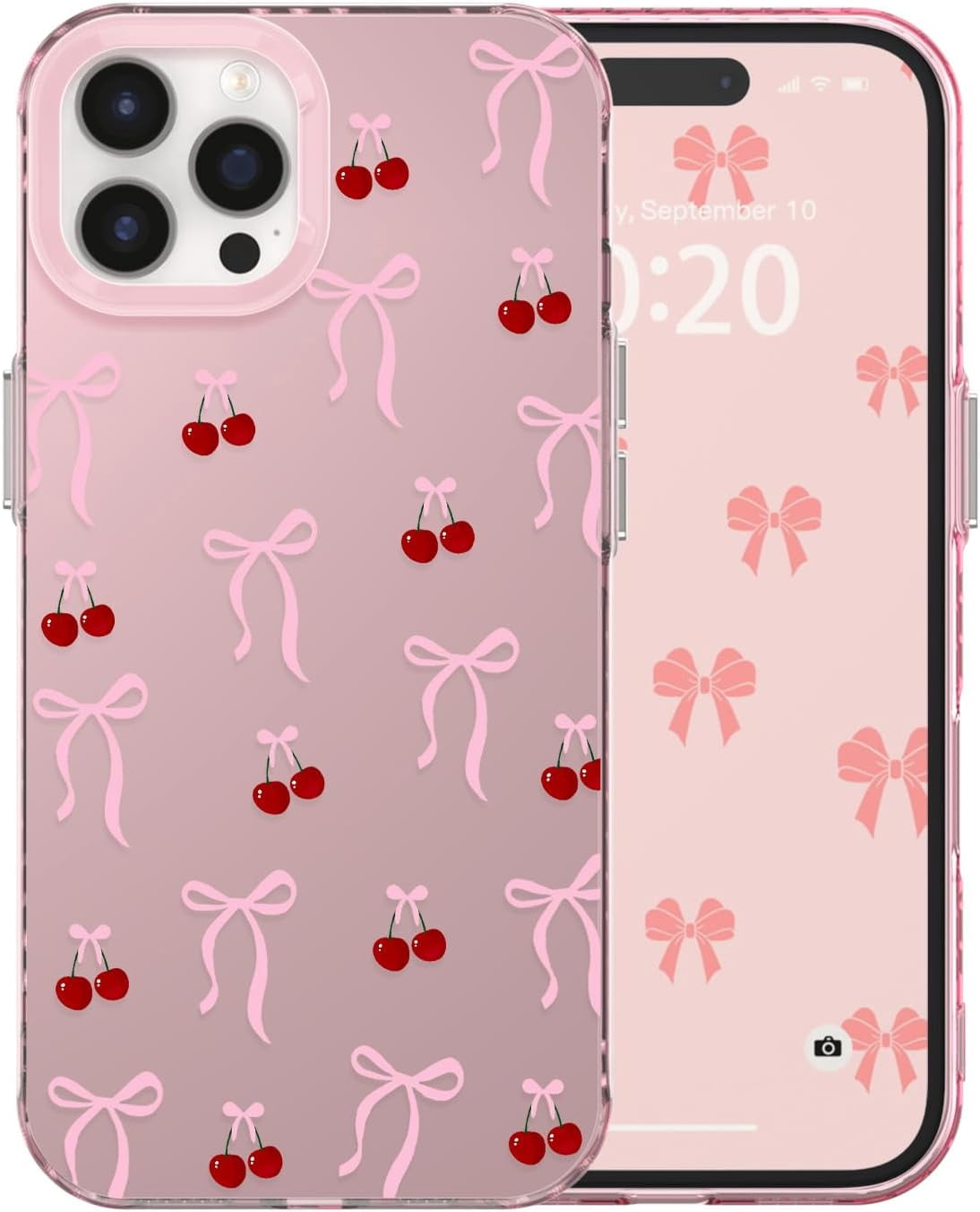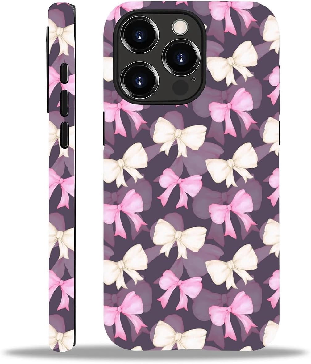 for iPhone 15 Pro Case Cute Ribbon Bow Cherry Aesthetic Pattern Case ...
