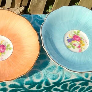 Vintage GREEN PINK and YELLOW Foley Tea Cups and Saucers - Etsy