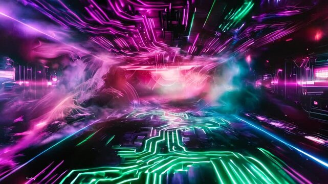 Pink screen coding hacker concept animation with glitch. Programming ...