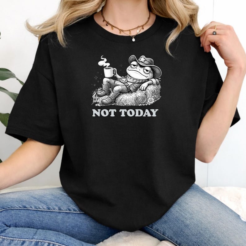 Cowboy Frog T-shirt, Funny Not Today Meme Tee, Introvert Casual Outfit ...