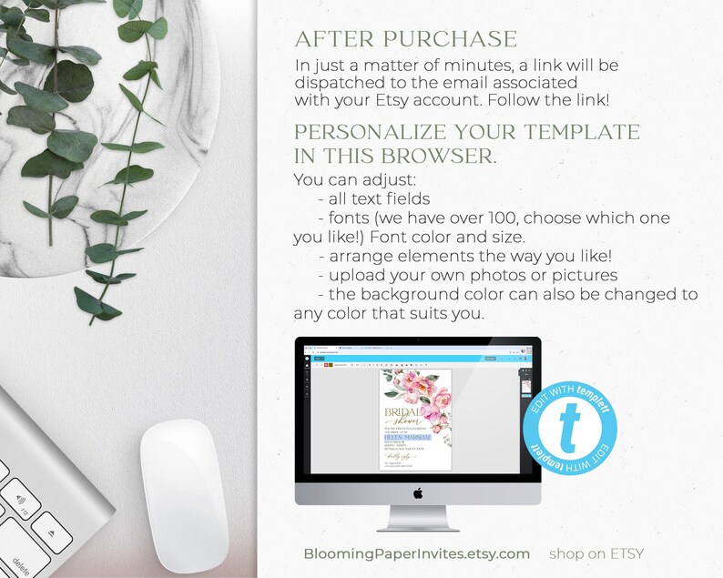 Peony Bridal Shower Invitation Template: Printable Pink Floral Invite ...
