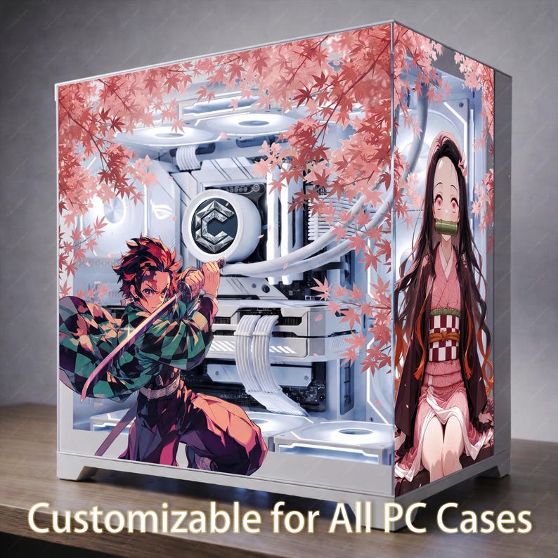 Demon Anime PC Case Skin | Brother & Sister Water Fire Wrap | Custom ...