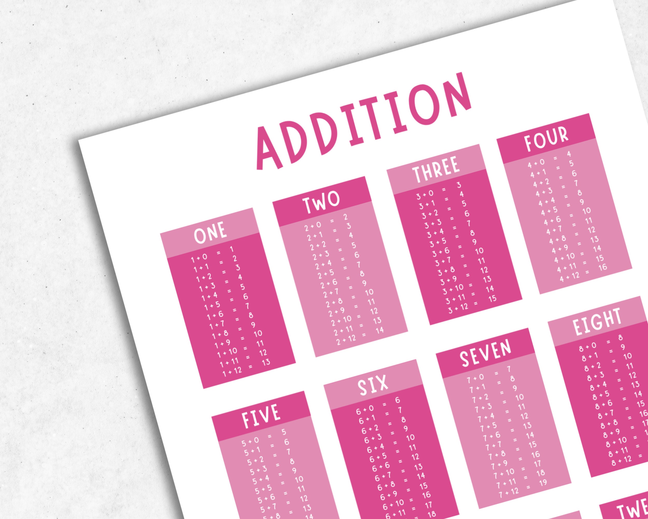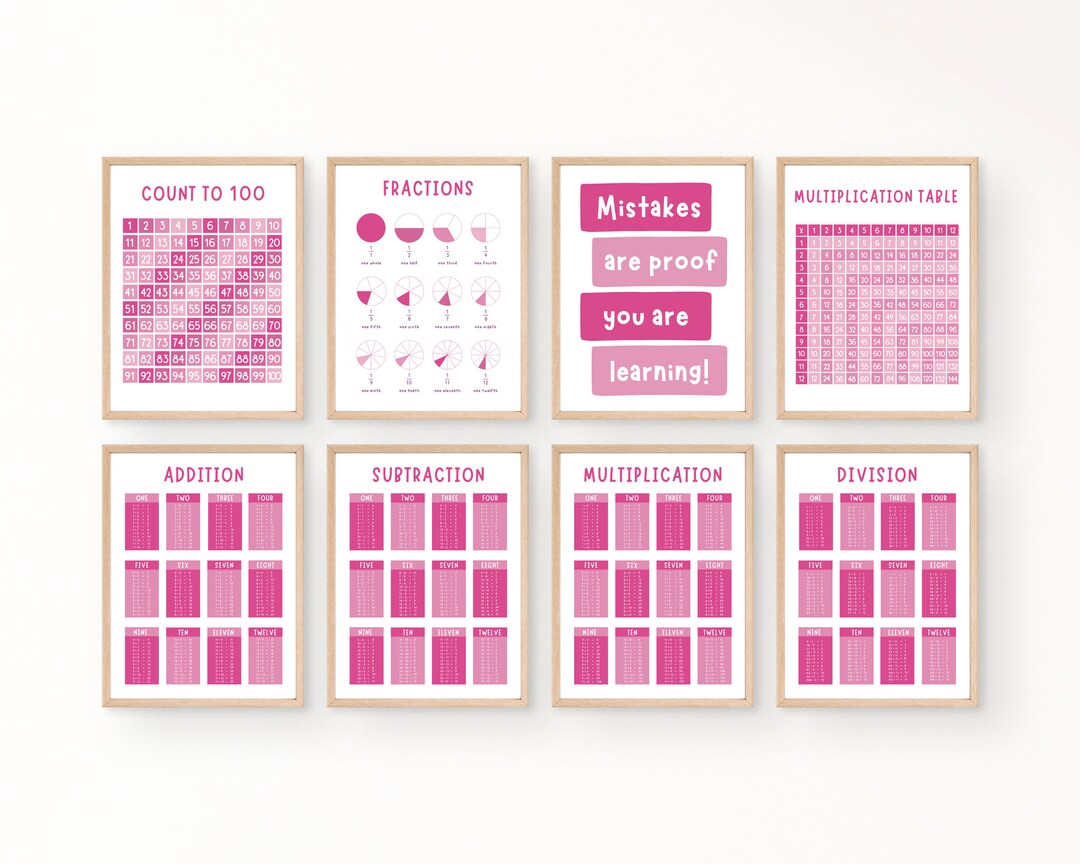 Pink Math Posters: Classroom Decor, Multiplication, Fractions (digital ...