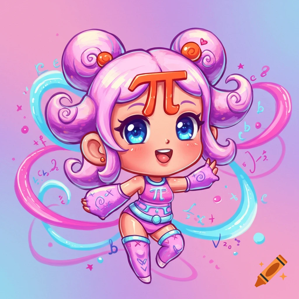 Chibi character representing Pi with pink hair and mathematical symbols ...