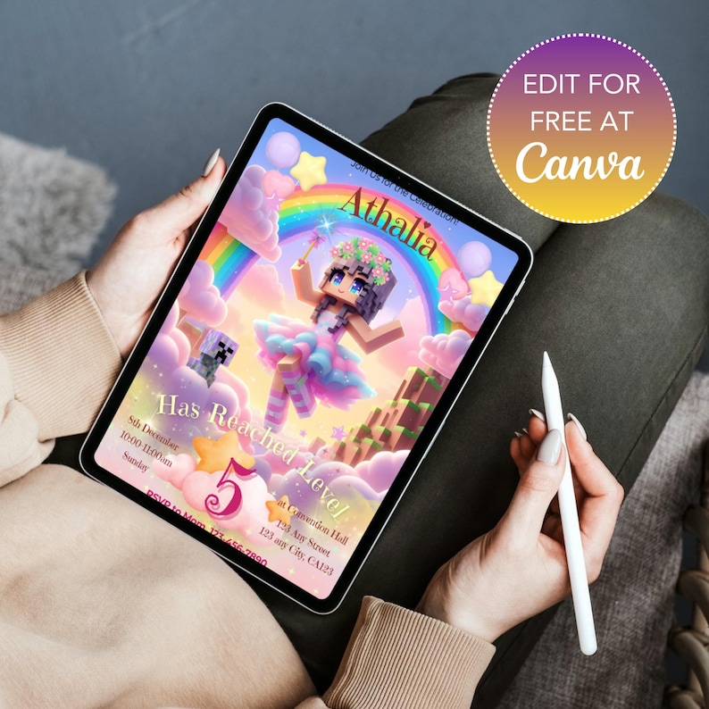 Pink Minecraft Birthday Invitation - An amazing online editor for you ...