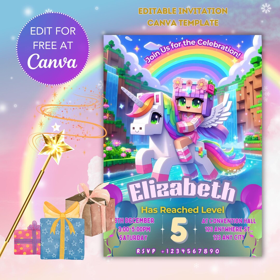 Editable Girls Minecraft Birthday Invitation, Minecrafter girl birthday ...