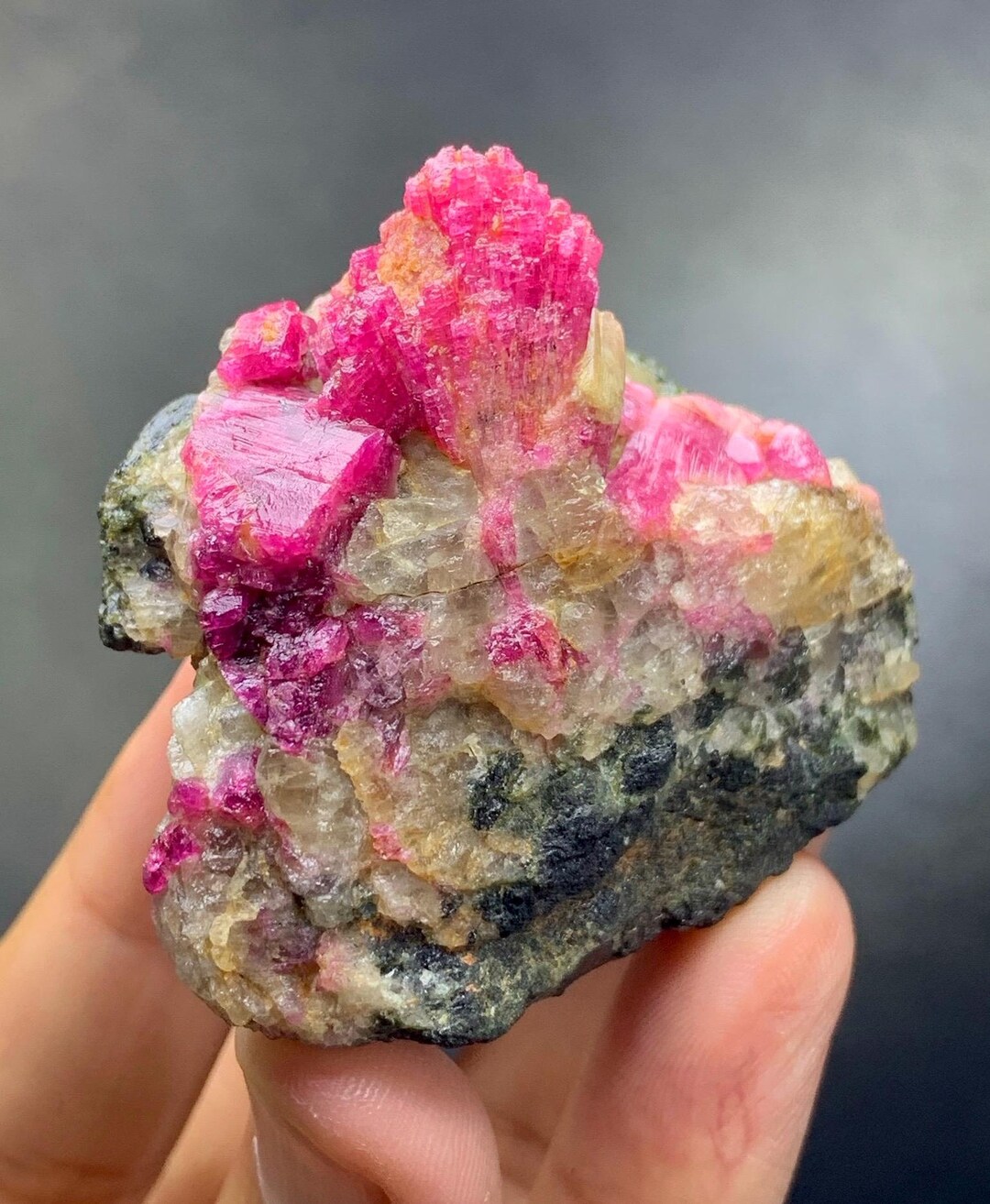 Pink Color Ruby Crystals Bunch on Matrix , Ruby Specimen , Ruby ...