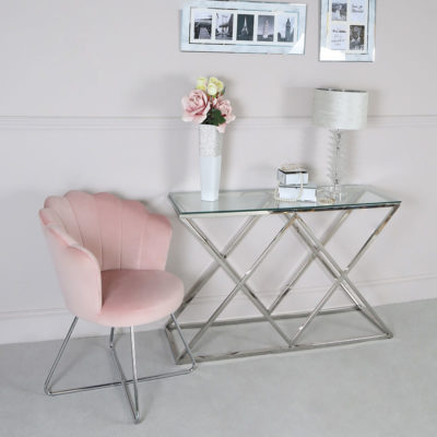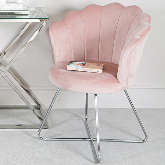 Light Pink Velvet Shell Back Dining Chair Armchair With Chrome Legs ...