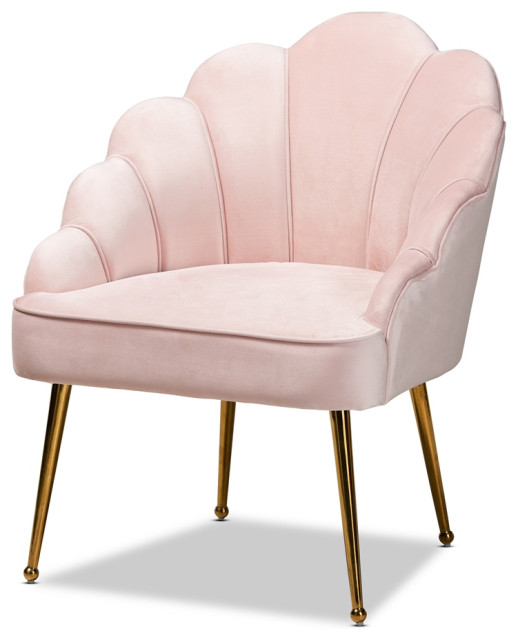 Pink Velvet Scalloped Shell Armchair Accent Chair With Gold Legs ...