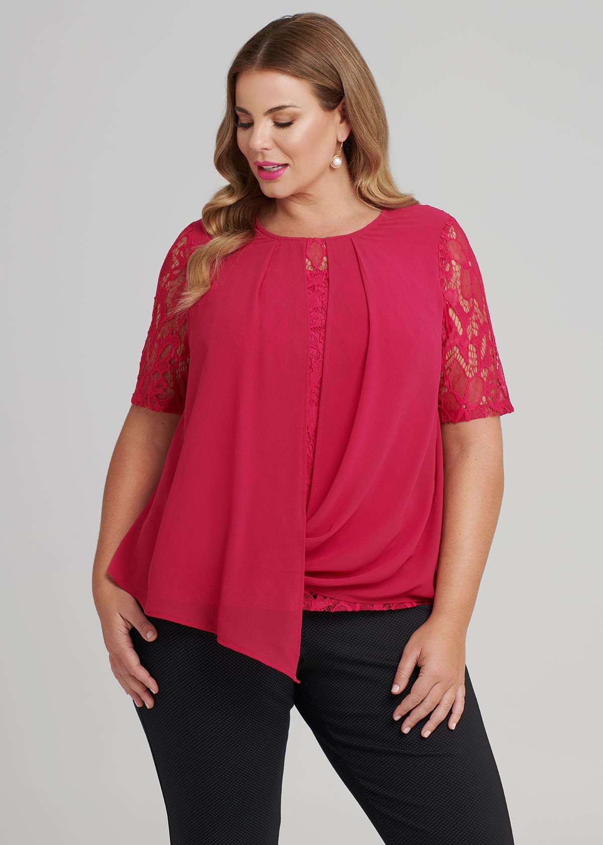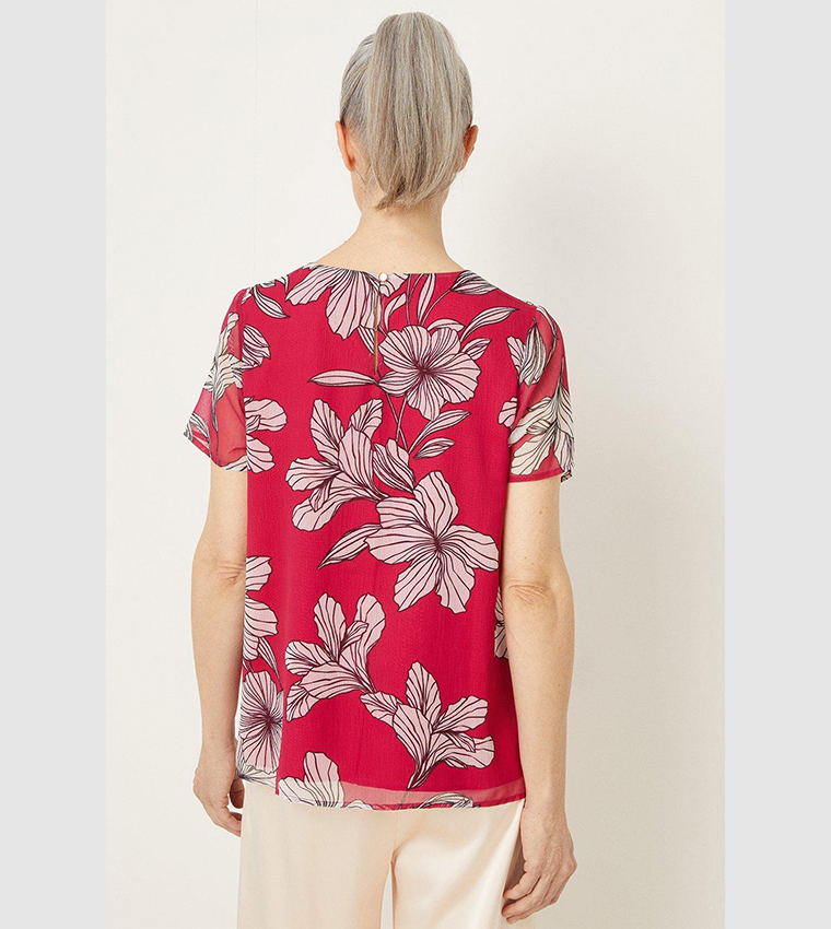 Curve Julia V-Neck Shell Top Pink Bloom - Portmans Online