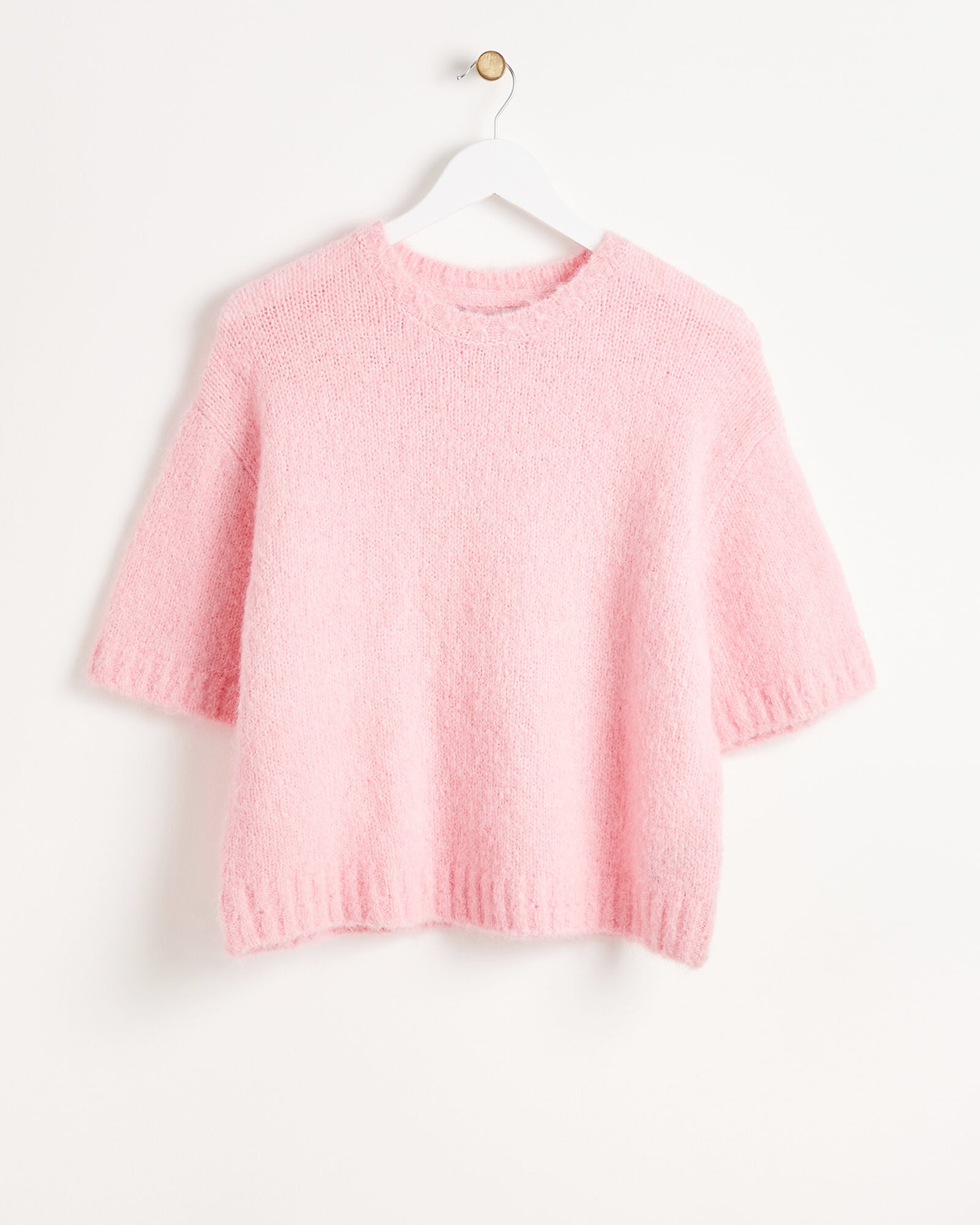 Fluffy Pink Knitted Shell Top | Oliver Bonas