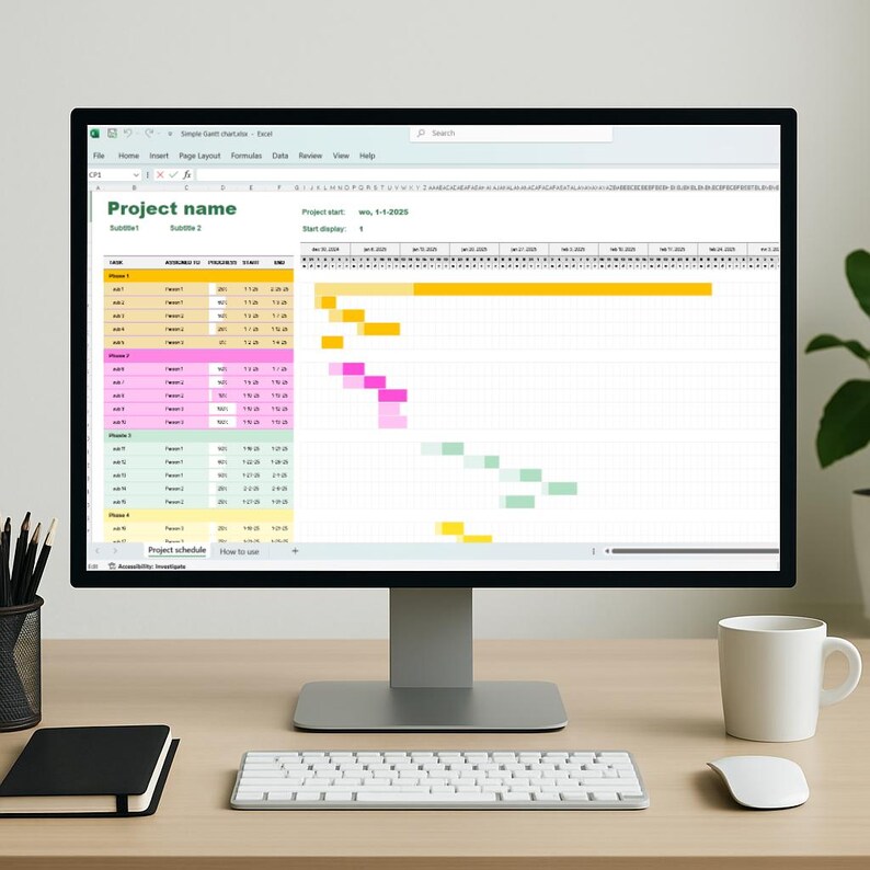 Project Management Gantt Chart Template – Excel Timeline & Planner - Etsy