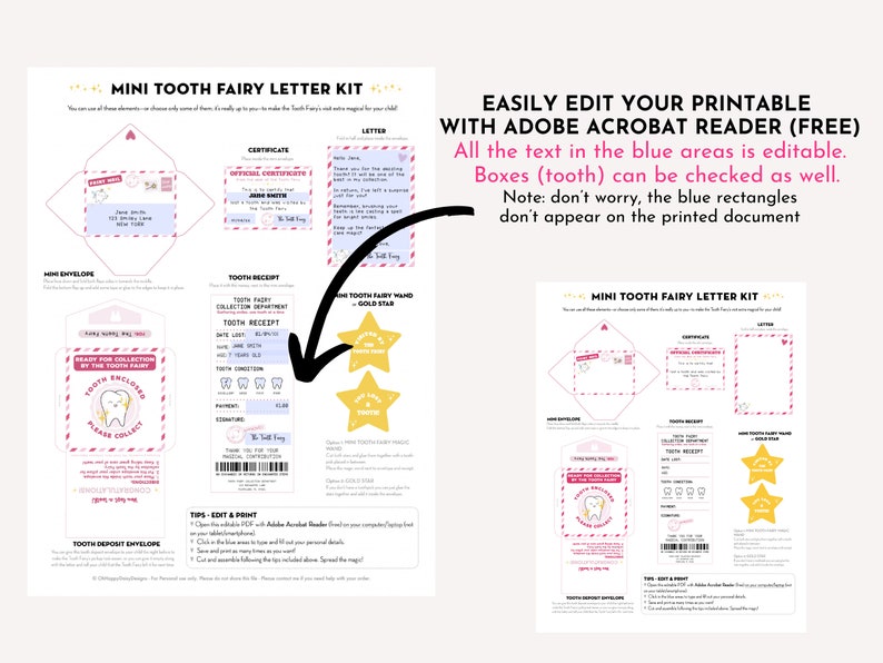 Editable Printable Mini Tooth Fairy Set Pink With Envelope, Letter From ...