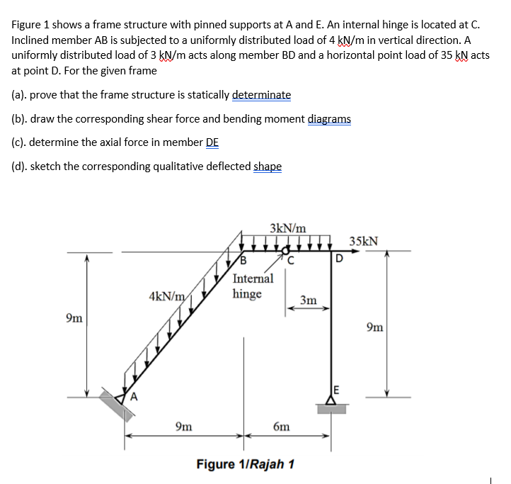 Solved Figure 1 shows a frame structure with pinned supports | Chegg.com