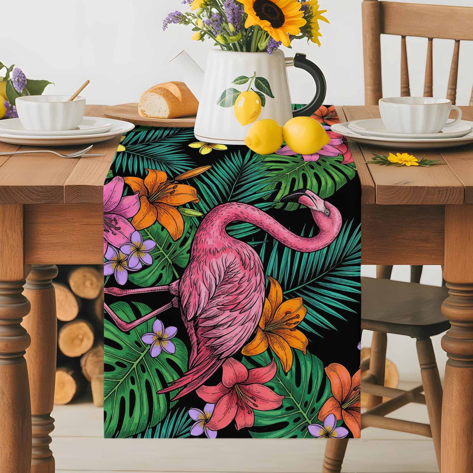 Burlap Table Runner 60 Inches Long, Pink Flamingos Tropical Leaf Non ...