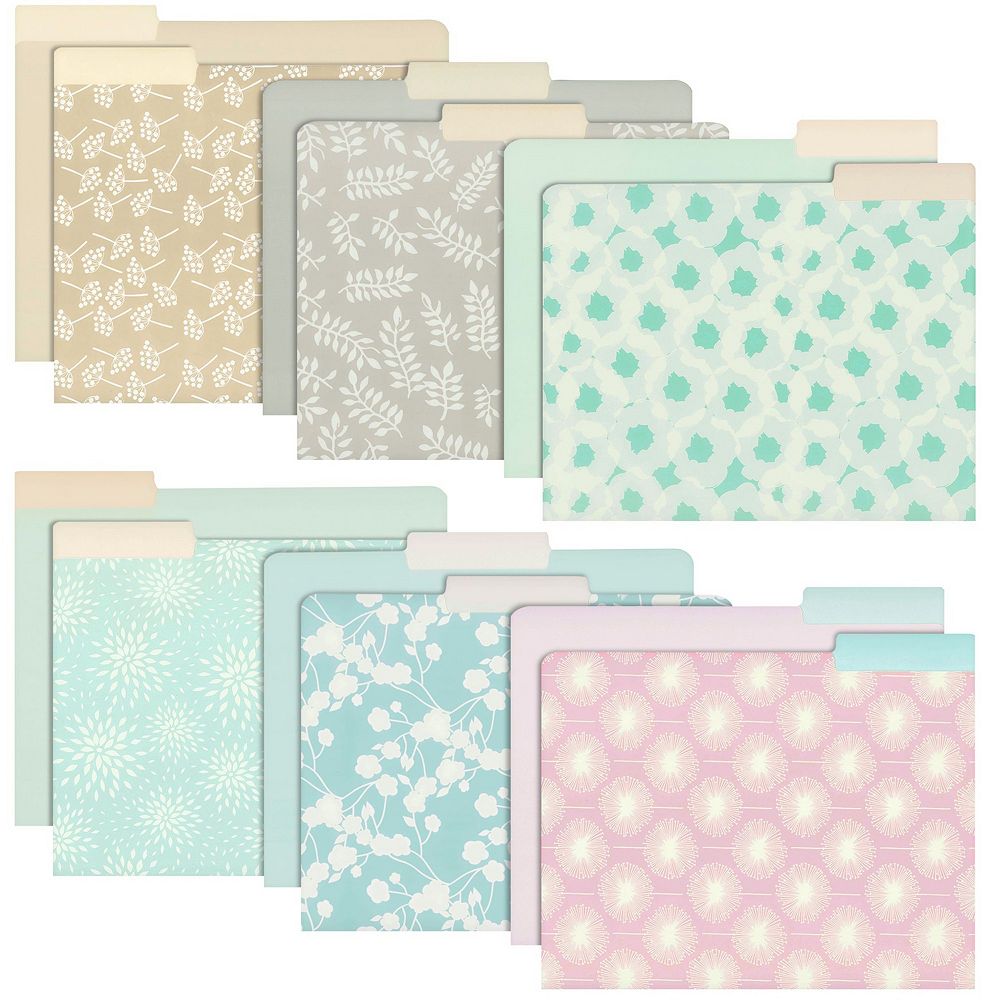12 Pack File Folders with Floral Pattern, 1/3 Cut Tab, Letter-Size, 6 ...