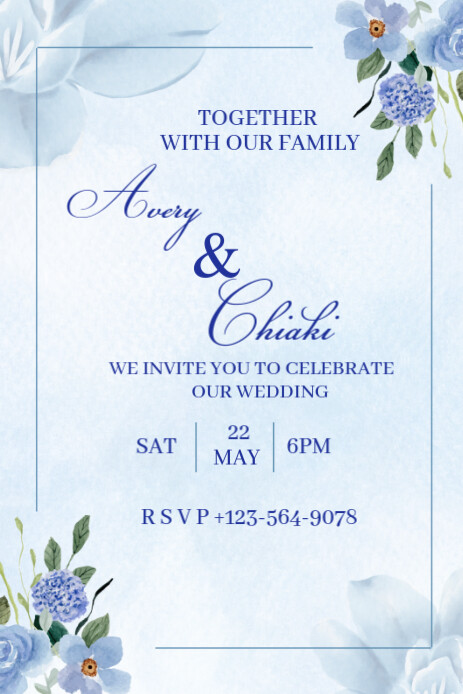 14+ Blue Floral Arrangement Canva Wedding Invitation Templates | FREE ...
