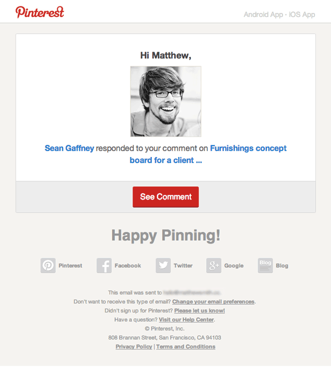 Comment Reply Transactional Email Design from Pinterest from Pinterest ...