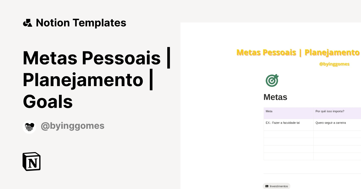 Metas Pessoais | Planejamento | Goals Template by Ingridi ...