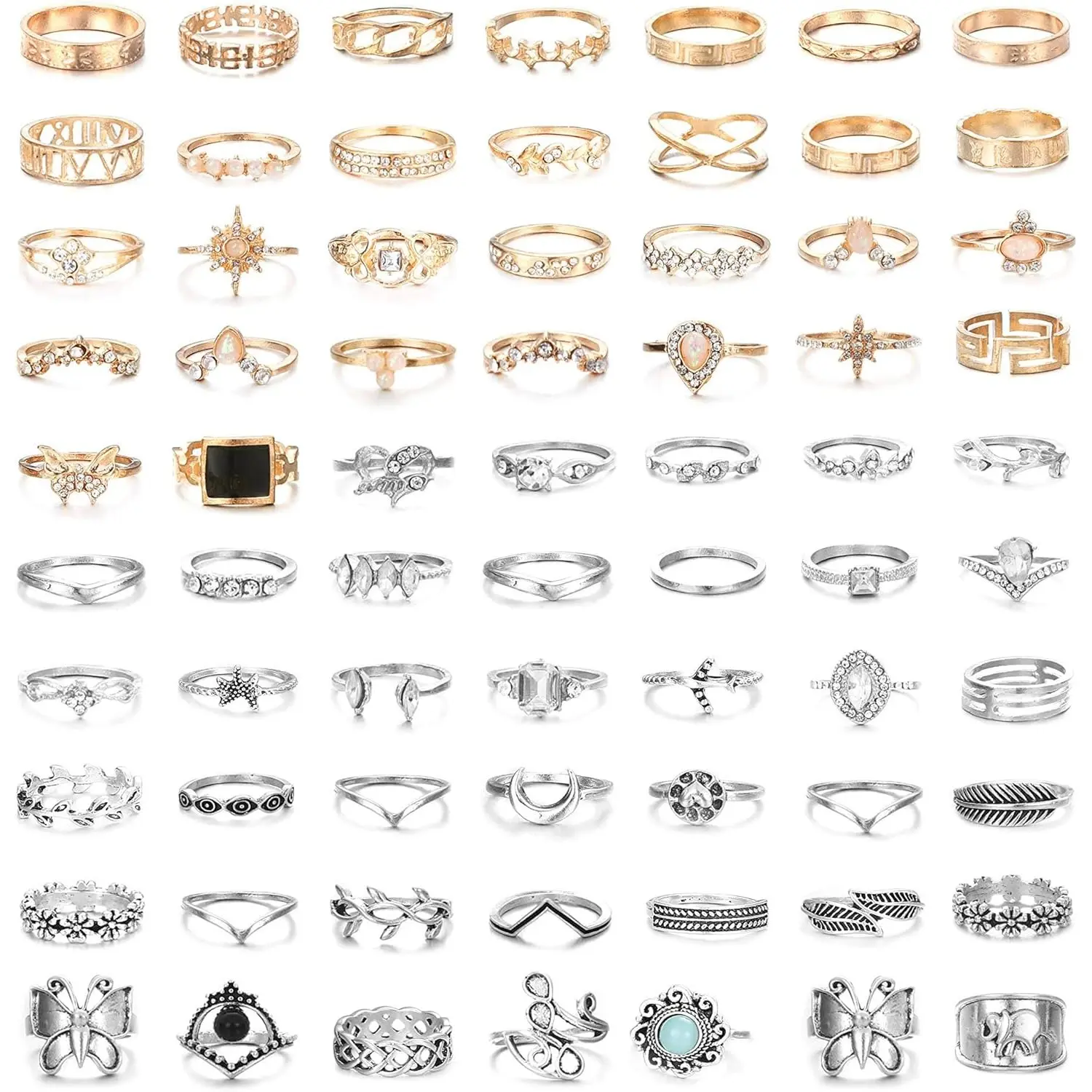 70Pcs Bohemian Stackable Knuckle Ring Set Vintage Gold & Silver Midi ...