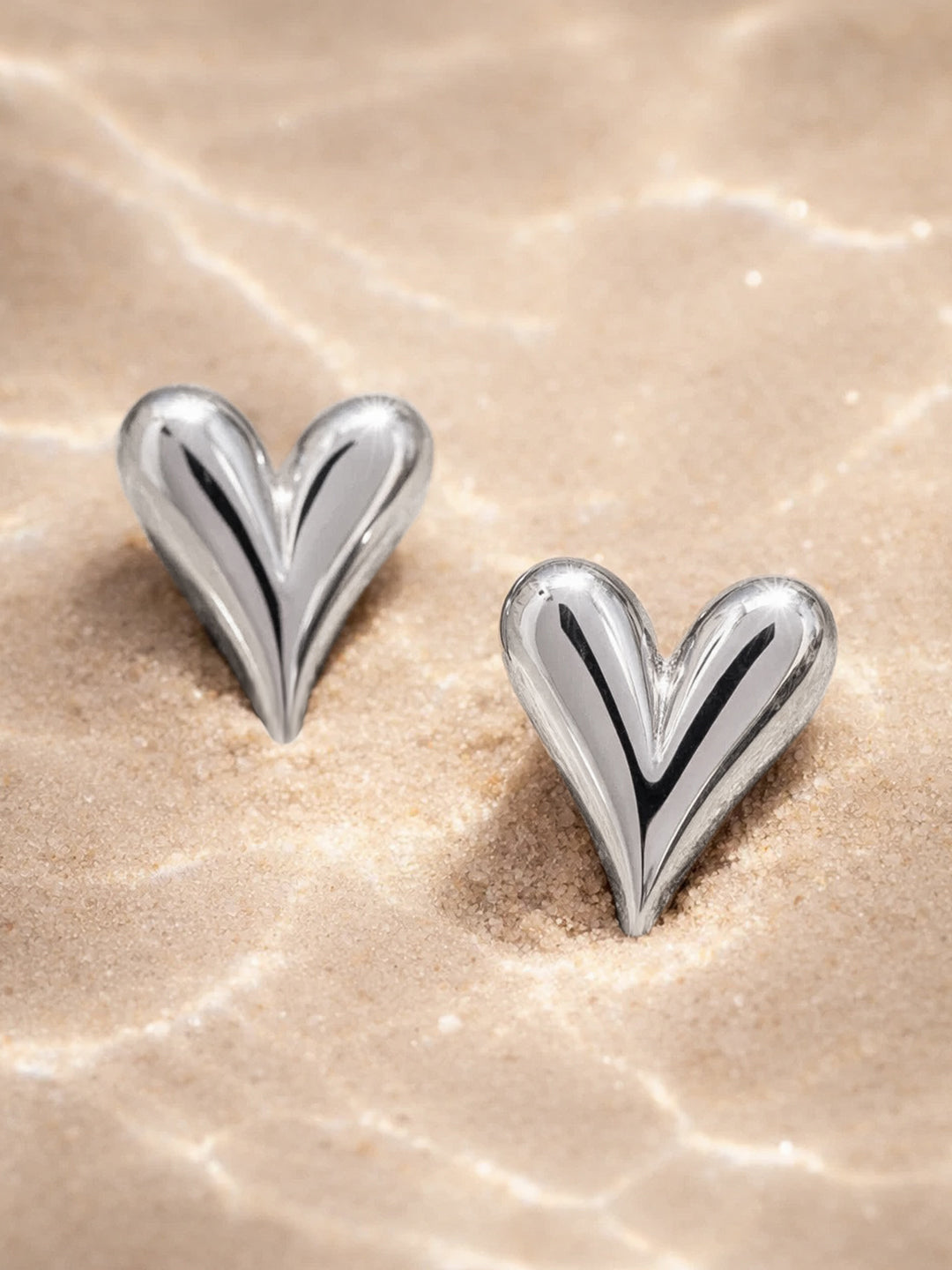 Demi Fine 18K Sleek Silver Heart Stud Earrings | Anti Tarnish – Rubans