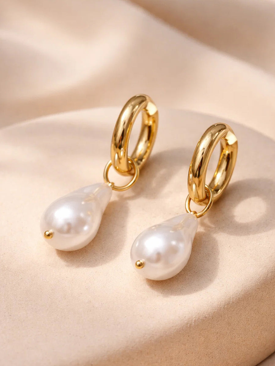 Demi Fine 18K Gold Plated Baroque Pearl Drop Hoop Earrings | Anti Tarn ...