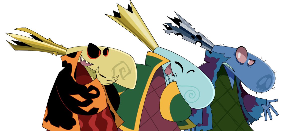 two cartoon characters, one with an owl and the other with a demon on ...