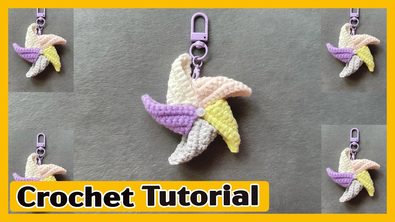 Crochet pinwheel keychain ( subtitle ) - YouTube