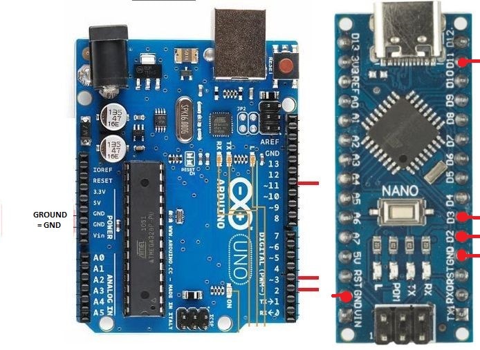 Przeniesienie projektu z Arduino UNO na NANO - odpowiedniki pinów 2, 3 ...