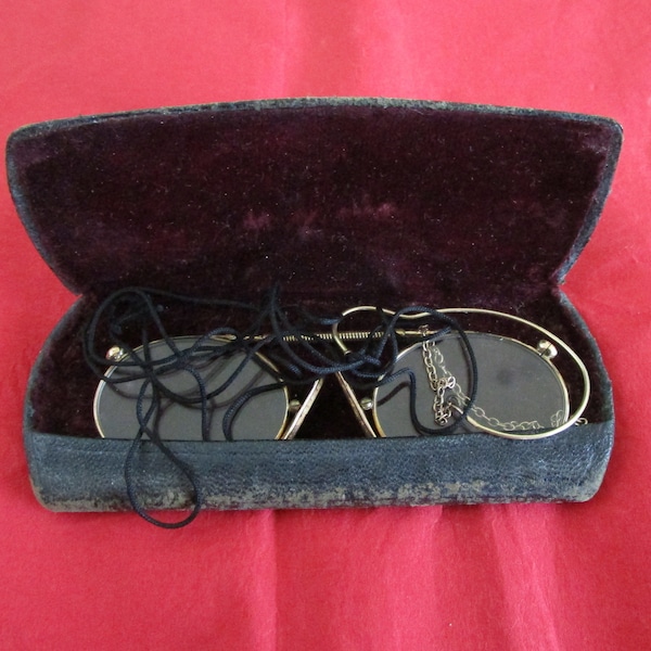 Antique Pince Nez Glasses Spectacles with Hair Pin and Case | Property Room