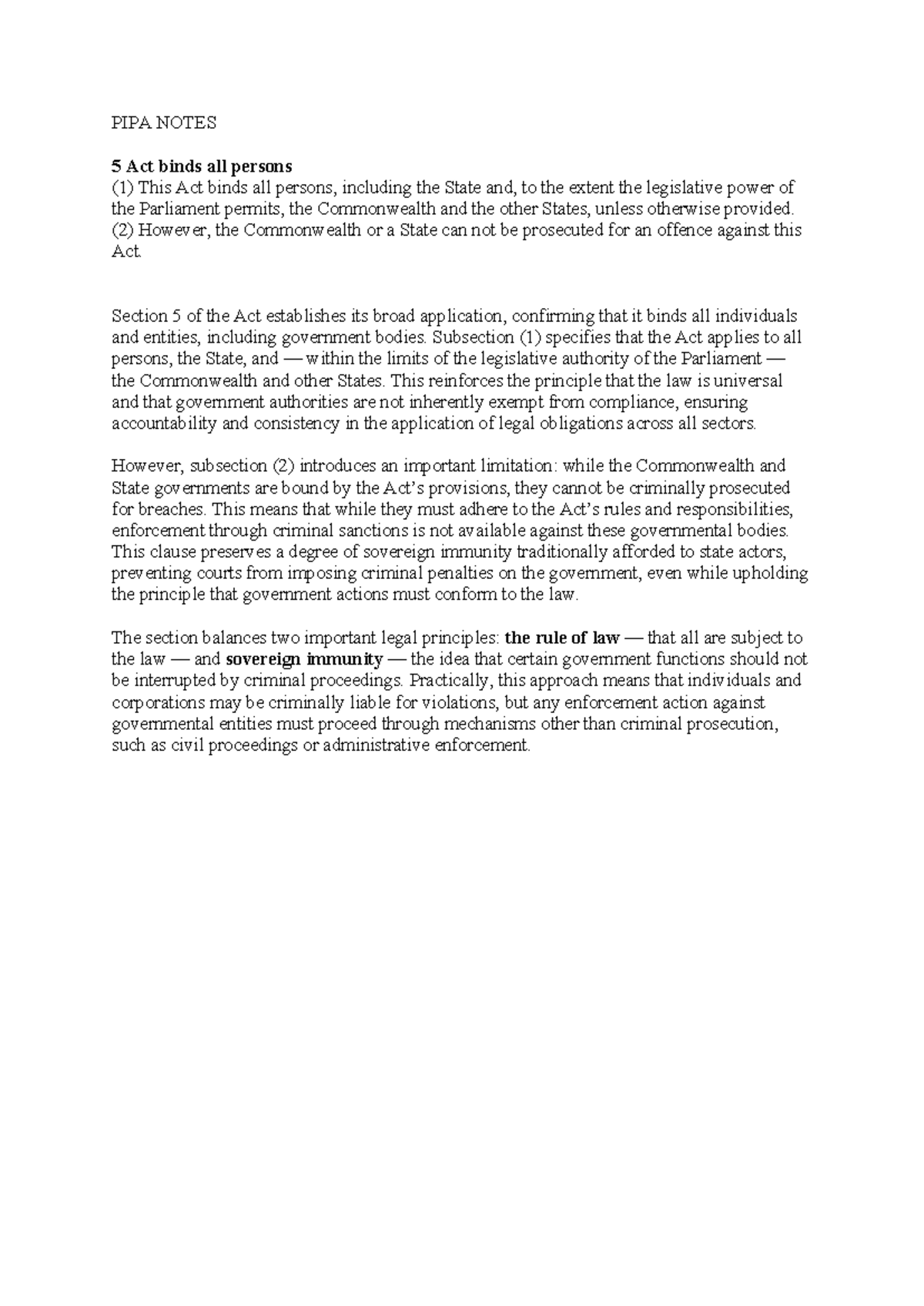 PIPA Notes: Analysis of Section 5 - Applicability and Limitations - Studocu