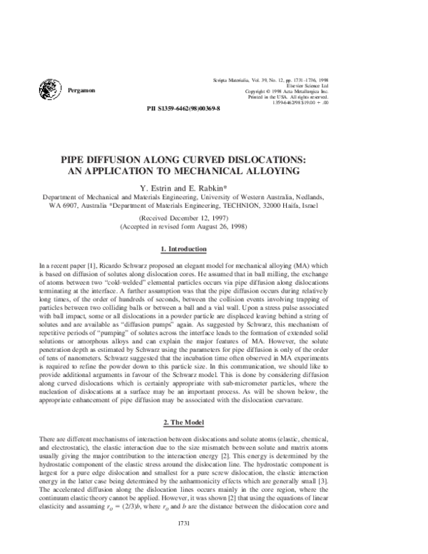 (PDF) Pipe diffusion along curved dislocations: an application to ...