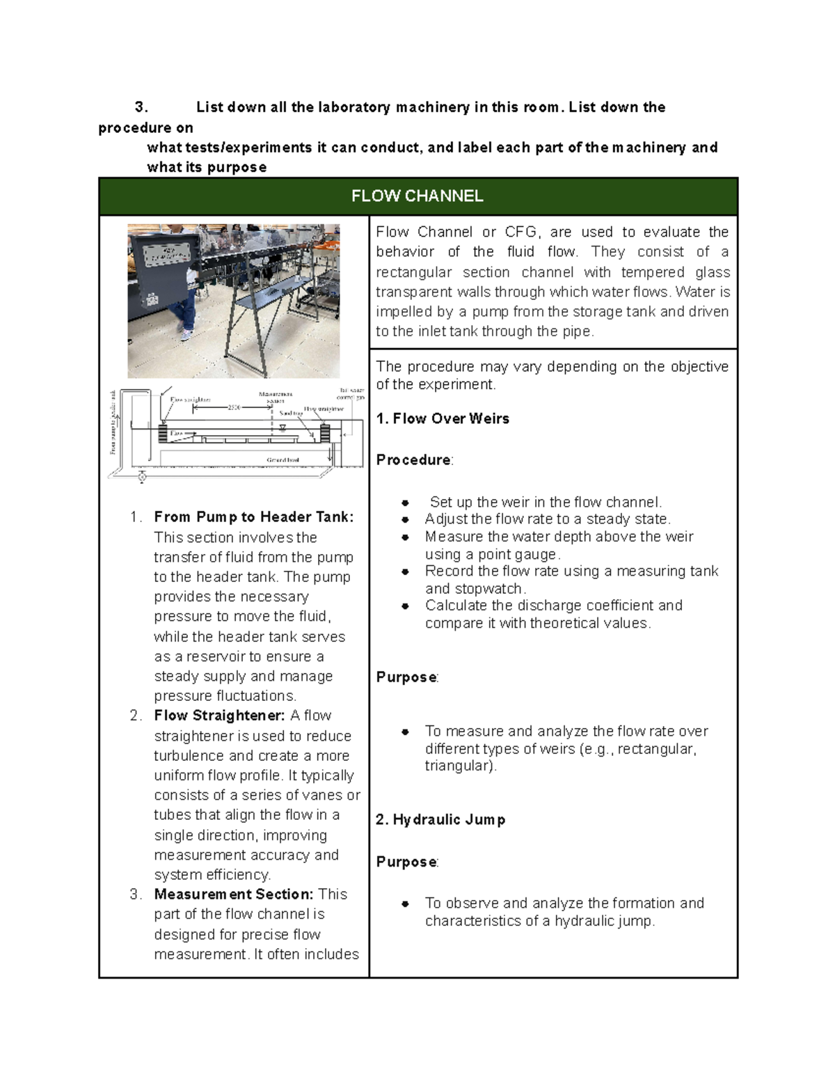 PART 2 Hydraulics Lab - 3. List down all the laboratory machinery in ...