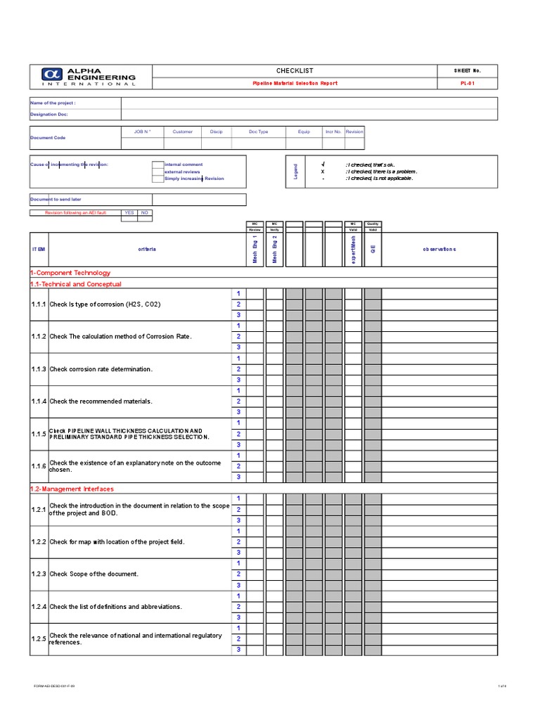 CHECK-LIST PL-01 Pipeline Material Selection Report - Fr.en | PDF ...