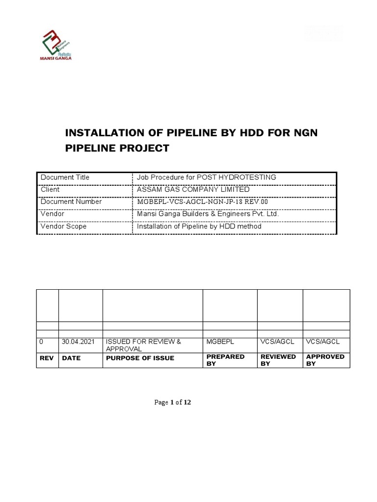 HDD Pipeline Hydrostatic Testing Method | PDF | Mechanical Engineering ...