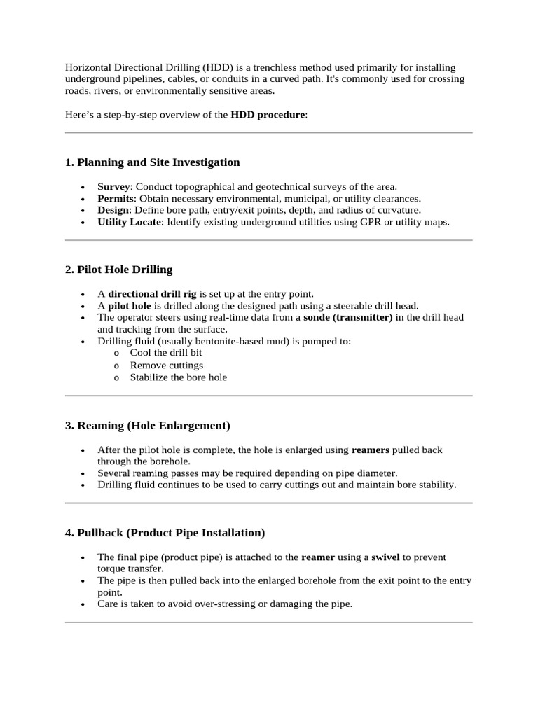 HDD Pipeline Installation Steps | PDF