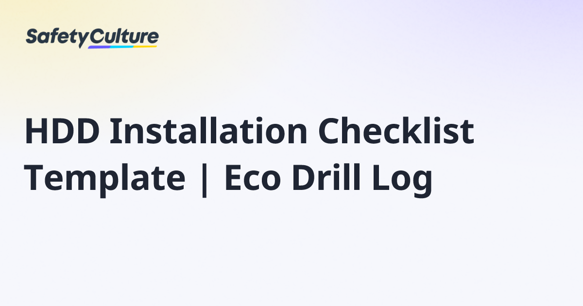 HDD Installation Checklist Template | Eco Drill Log | Free Template