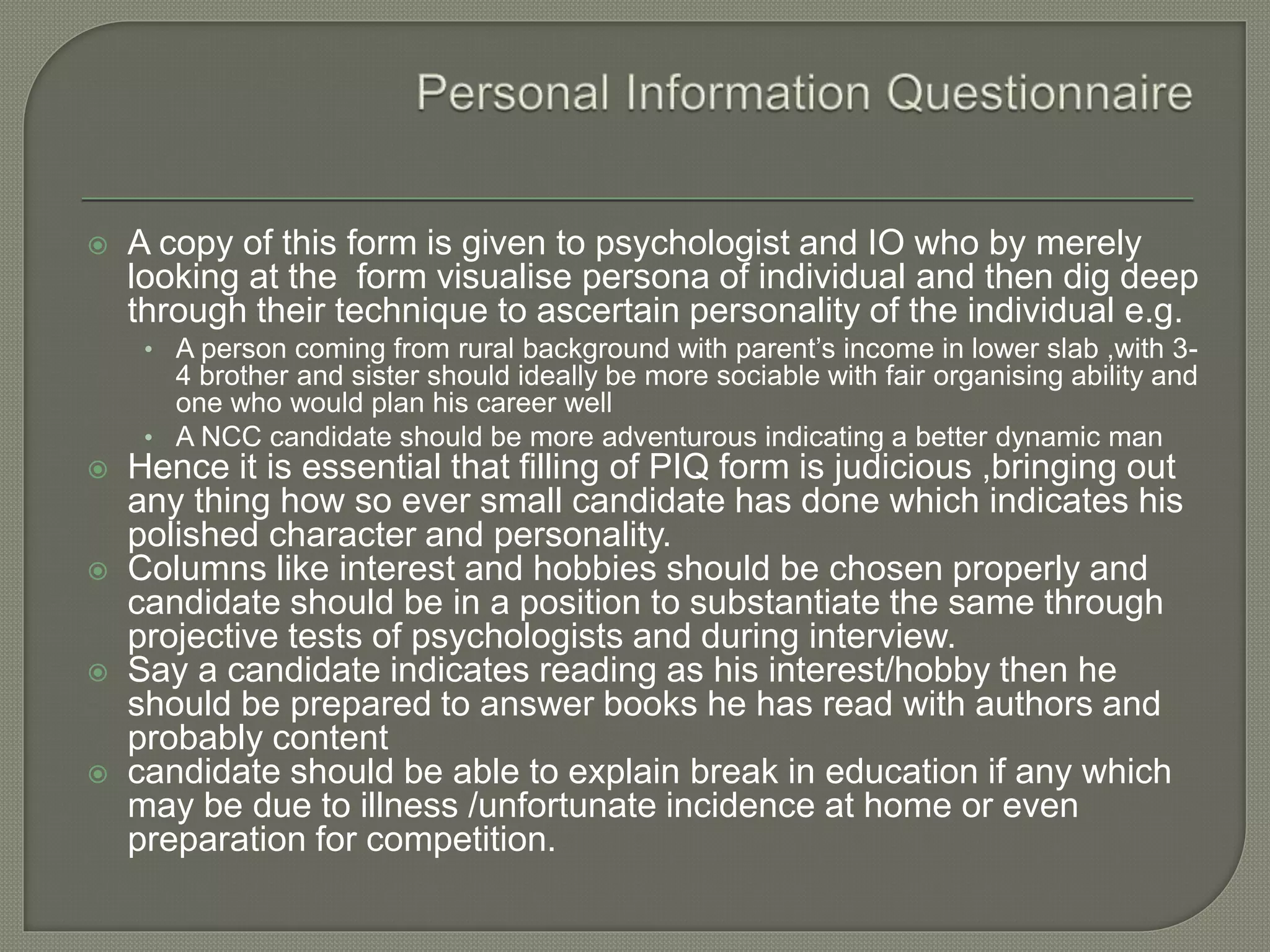 Personal Information Questionair(PIQ) FOR SSB | PPT