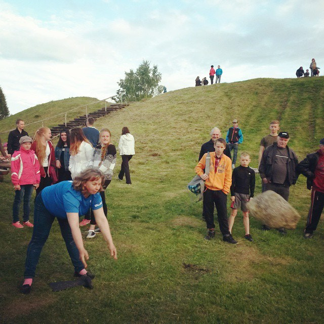 Pirgit throwing a rock as part of a competition during the midsummer ...
