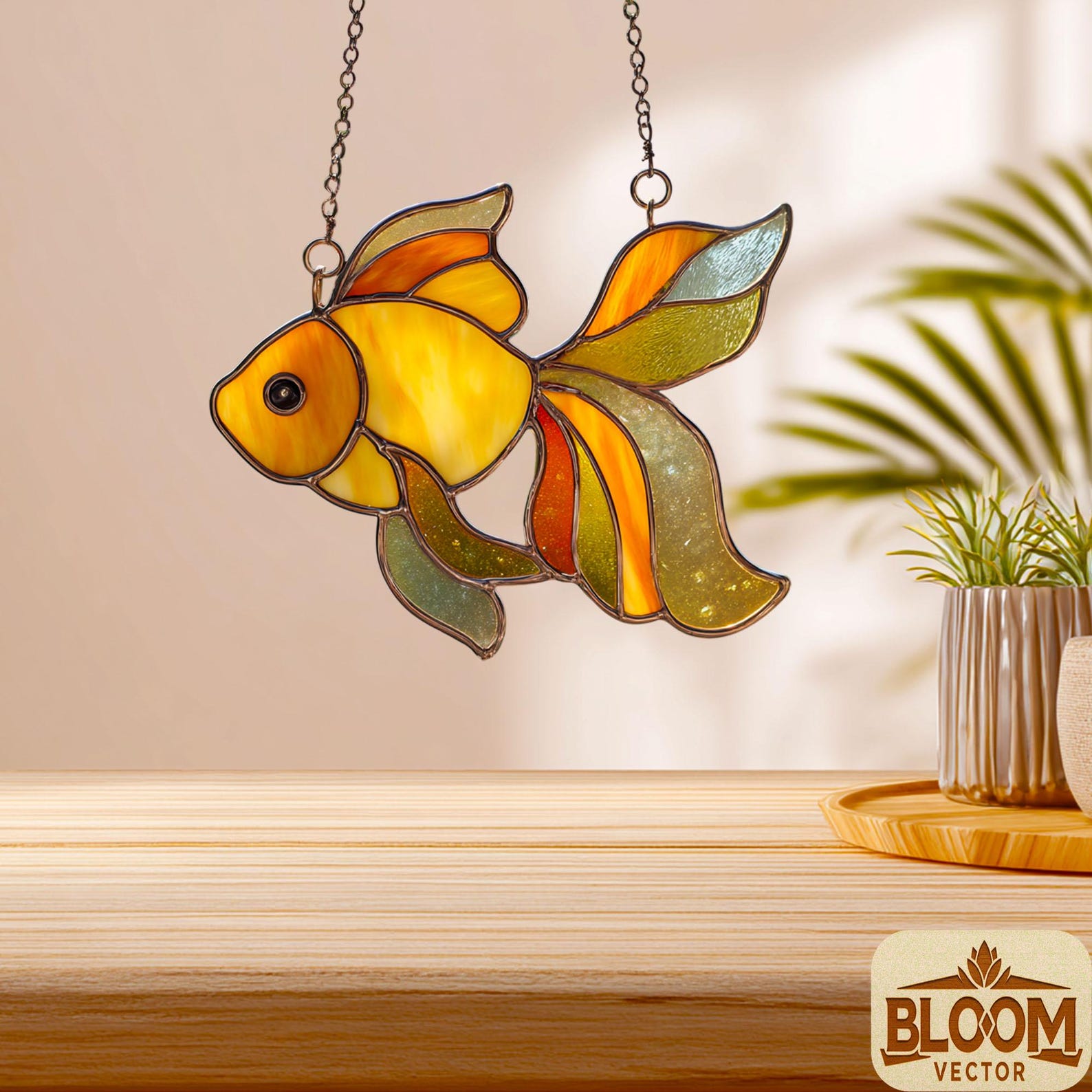 Golden Fish Stained Glass Pattern: DIY Home Decor (PDF & PNG Files ...