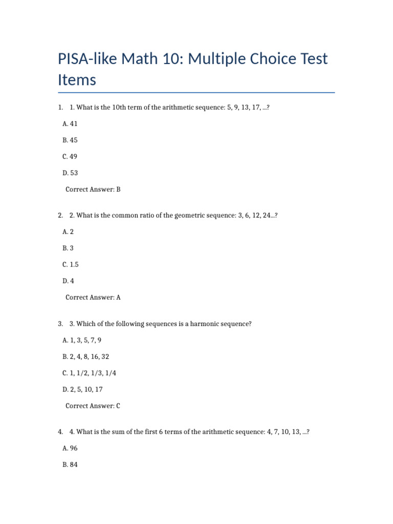 PISA Sample Questions: Enhance Your Math Skills Now! | Course Hero