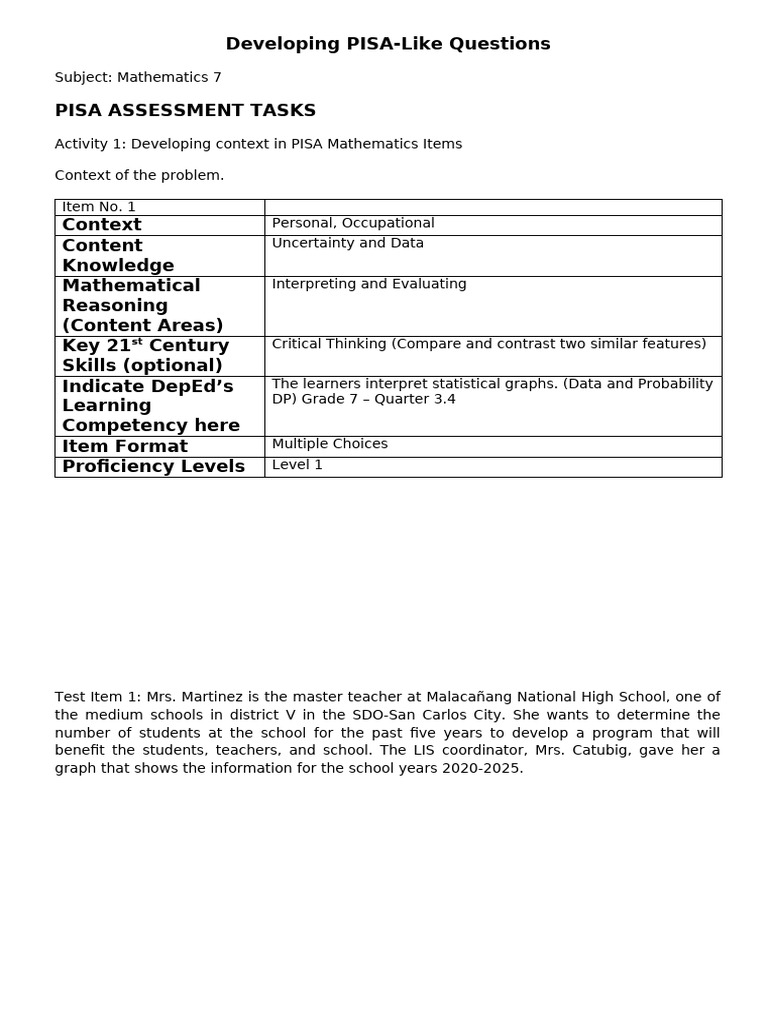 PISA-Type Questions | PDF | Chart | Cognitive Science