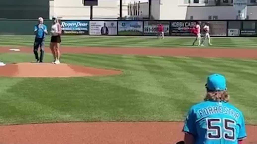 WPBF 25 Meteorologist Sandra Shaw throws first pitch
