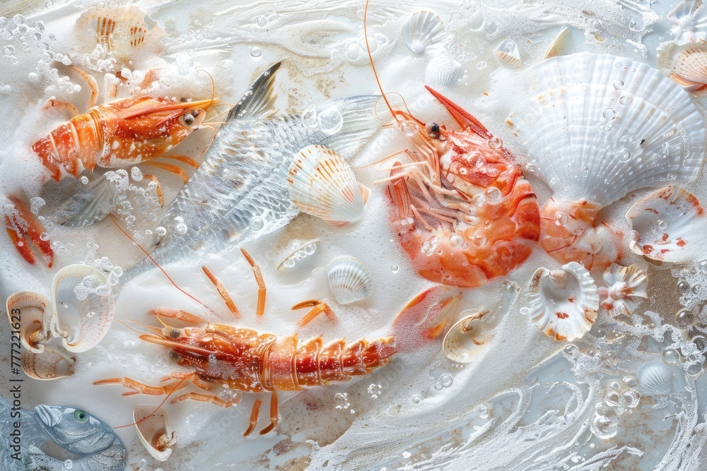 Radiant abstract seafood motifs, evoking the flavors of fresh fish and ...