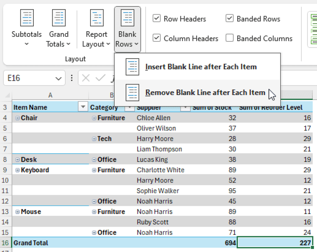 Pivot Table Design Options at Scott Slane blog