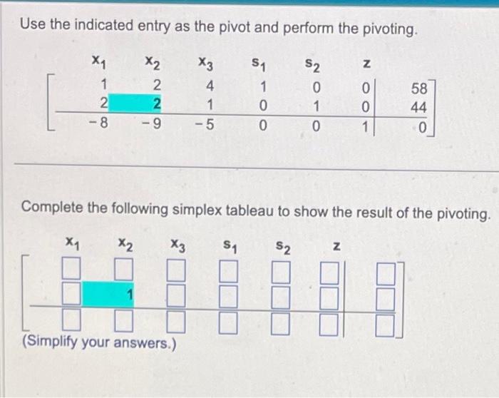 Solved Use the indicated entry as the pivot and perform the | Chegg.com