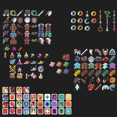 Detailed pixel art assets of various fantasythemed items and objects ...