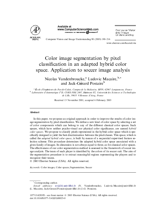 (PDF) Color image segmentation by pixel classification in an adapted ...