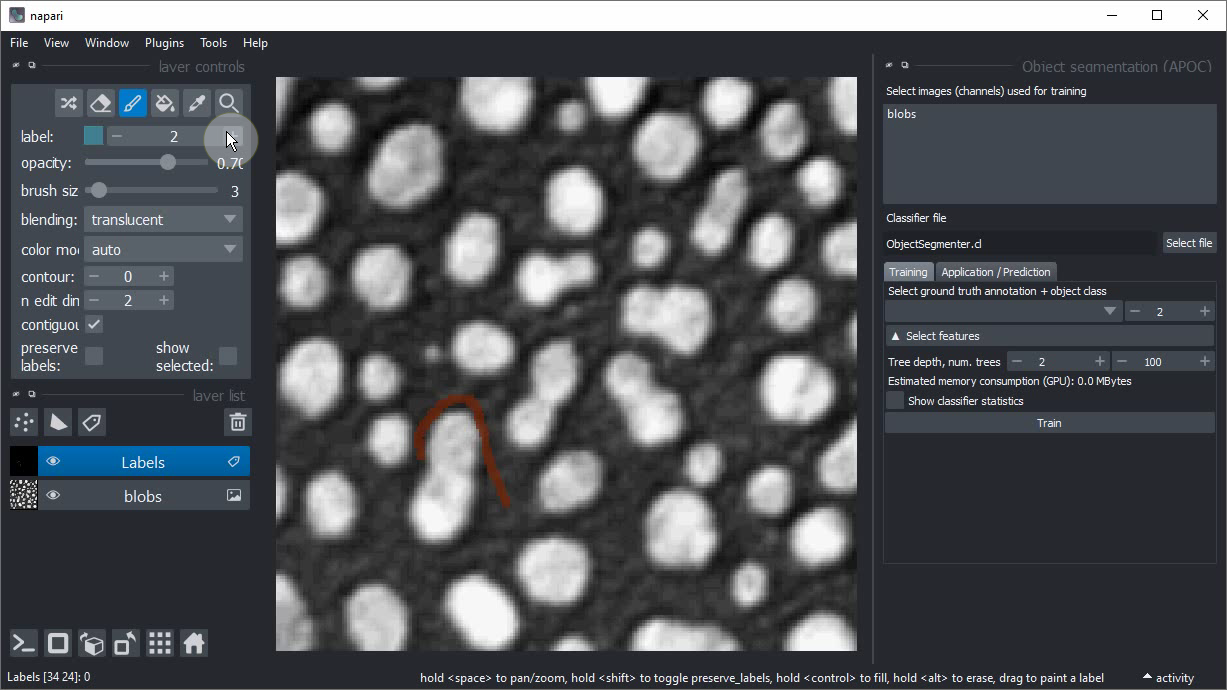 Interactive pixel classification and object segmentation in Napari ...