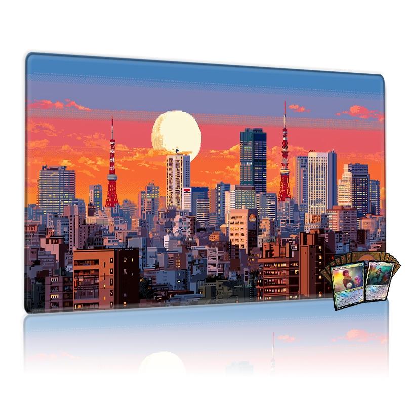 Pixel Art Tokyo City Sunset Gaming Playmat 12x24 Inch TCG MTG Magic ...